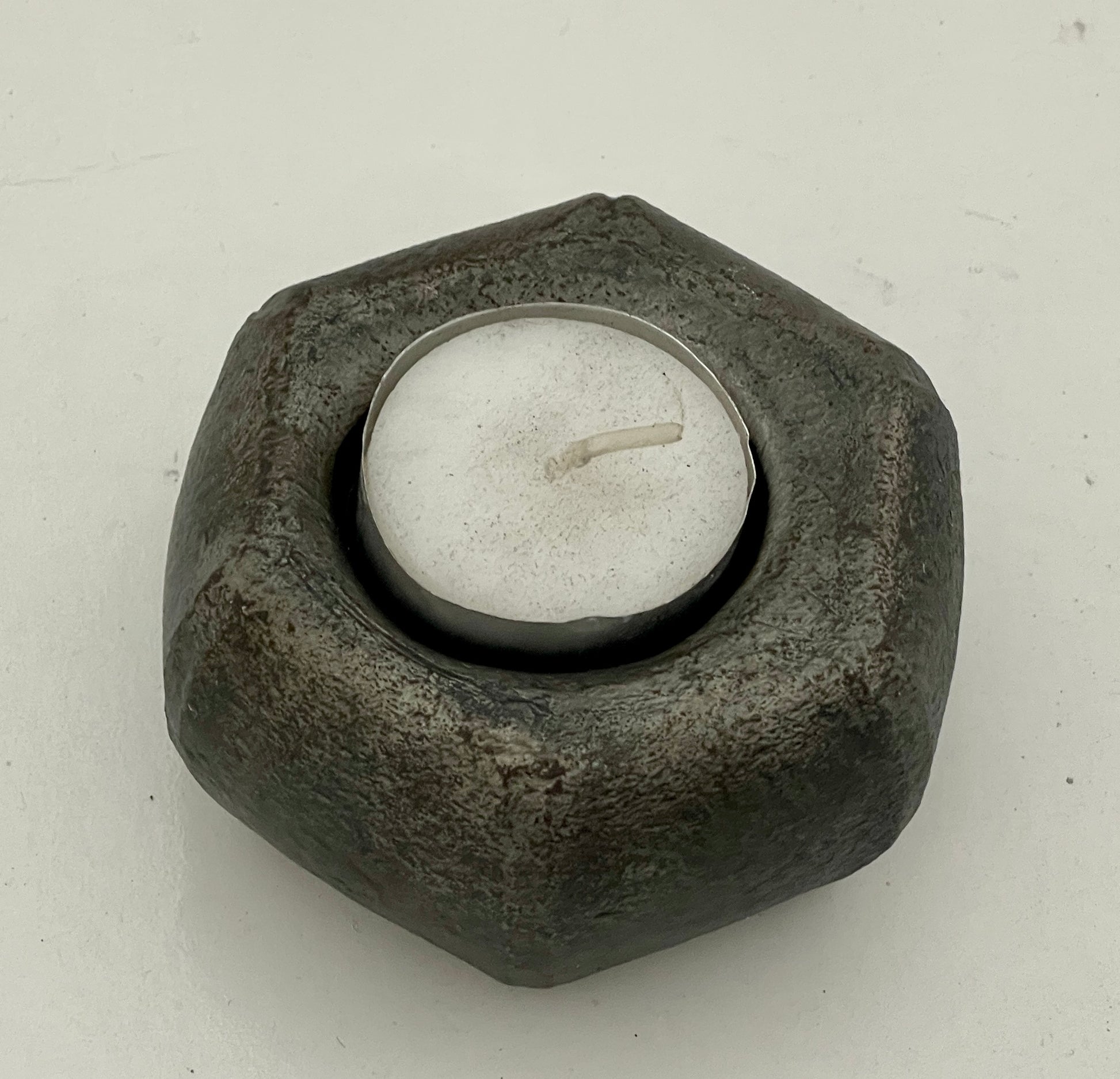 This Hand Forged, Blacksmith made Tea Light Candle holder is made from a solid piece of Hex Steel Bar.